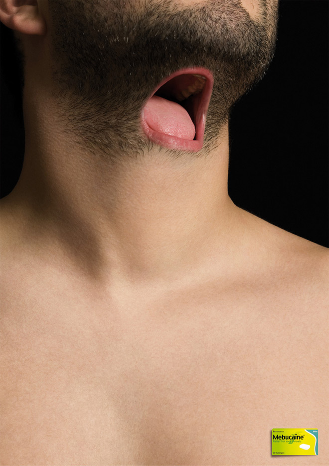 Esta fue la obscena propuesta de Saatchi & Saatchi para vender un medicamento para el dolor de garganta. La verdad es que dan ganas de otra cosa…