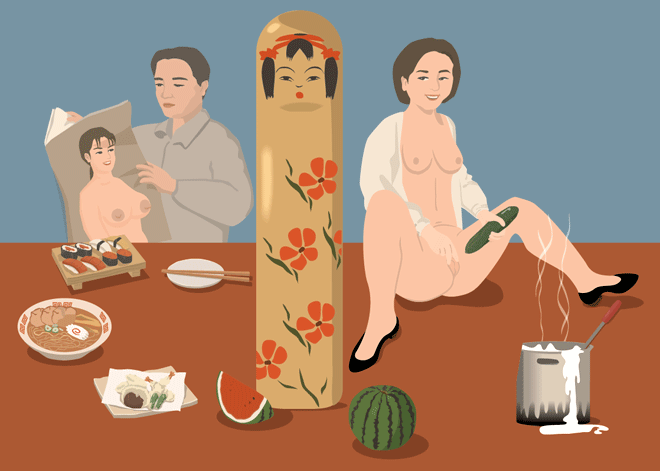 Mientras que Bat Tao Lo vive y trabaja en Barcelona, su obra está en dos mundos bien distintos. Uno de ellos, inspirado en el Shunga, es el mundo de la diversión erótica, el porno, el fetichismo y el consumismo enfermizo. El otro podría describirse mejor como el mundo “Kaleidoporno”, consistente en una serie de piezas creadas a partir de películas porno, y donde la multiplicación de imágenes genera situaciones de lo más rocambolescas…