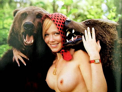 La siguientes serie de fotos nos ha cautivado a pesar de su reducido tamaño y de no haber podido encontrar más que tres fotos. Tampoco sabemos quiénes son la chica ni los responsables de esta puesta en escena. Por la calidad de las imágenes éstas parecen haber sido escaneadas de una revista. En cuanto a su interpretación, yo diría que se trata de un mashup de cuentos populares donde el lobo de “Caperucita Roja” ha sido substituido por los osos de “Ricitos de Oro”, aunque aquí sean dos en lugar de tres. Rogamos a quien nos pueda dar más pistas sobre su autoría que nos informe a través de los comentarios. Vía Baby Sinead.