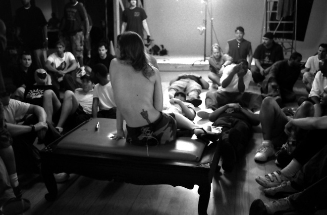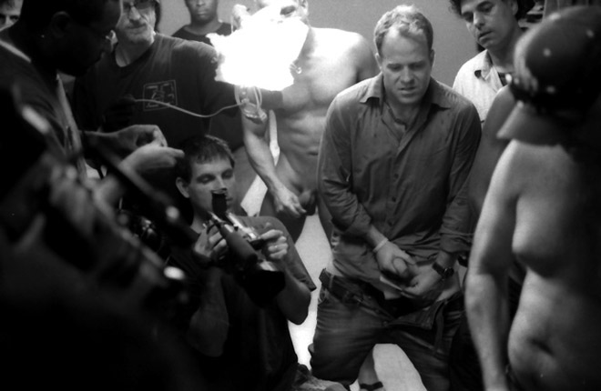 Lo que más me gusta de las series fotográficas de Dennis MacGrath en rodajes de películas porno, son esos pequeños detalles que muestra su cámara y que sólo los más avispados consumidores de cine X son capaces de imaginar. Me refiero por ejemplo, a los recipientes que se introducen en la vagina para expulsar cantidades importantes de “flujo”, y que vimos en una anterior serie que titulé “un día en el rodaje de un Squirt Bukkake”.