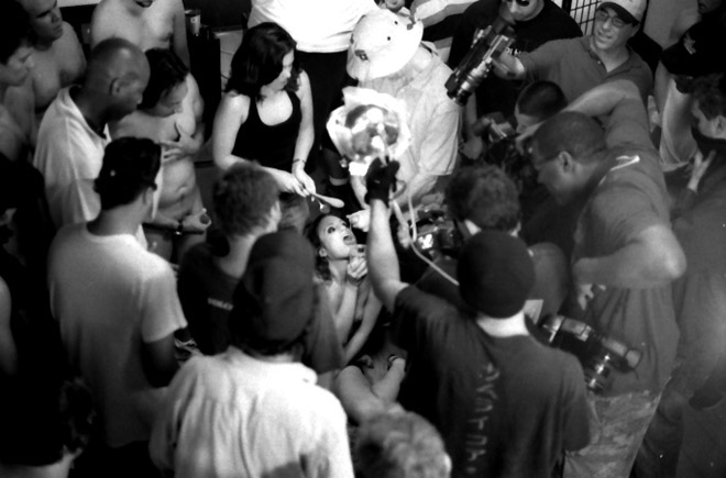 El de hoy es un documento que realizó hace dos años miesntras se rodaba un Bukkake en California, y en el que puede apreciarse uno de los secretos mejor guardados del Bukkake ¿tragan realmente esperma las actrices? Yo creo que en este caso Ashley Blue no estaba allí para preparar los zumos del director.