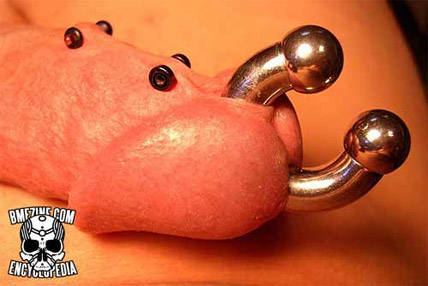 Las clásicas barritas de acero con bolitas en sus extremos y que se situan en a corona de la glande, es el piercing conocido como Dydoe. Uno de los mas dolorosos, ya que se practica en la zona genital de mayor cantidad de determinaciones nerviosas.