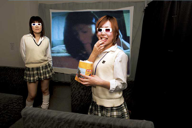 Realidad 3-D llevada a su extremo en esta sala de cine X.